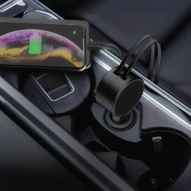 کابلهای این شارژ فندکی به صورت تلسکوپی عمل میکنند؛ به این معنی که شما باید کابلها را به طور کامل به طول 80 سانتیمتر بیرون بکشید و سپس با رها کردن آنها، کابلها به صورت خودکار جمع میشوند. این ویژگی باعث میشود که کابلها همیشه مرتب و جمع و جور باشند.