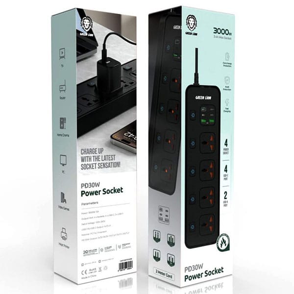 چندراهی چهار سوکت Green Lion PD30W یک محصول کاربردی و با کیفیت برای تأمین برق دستگاههای مختلف است.